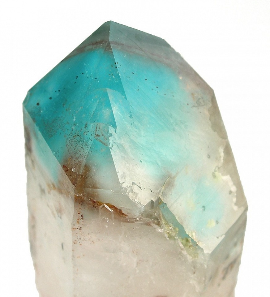 The unique appeal of ajoite in quartz lies in the visual contrast. The vibrant, often powdery blue-green inclusions are beautifully preserved within the clear, colorless quartz. Sometimes, the ajoite forms "phantoms," which are internal outlines of the crystal's growth stages. These phantoms, along with associations with other rare copper minerals like shattuckite and papagoite, make for spectacular and highly collectible specimens.